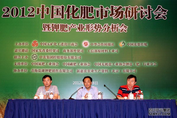 本報訊 9月18日,由中國五礦化工進出口商會、中華合作時報、中國農資傳媒聯合主辦的“2012中國化肥市場研討會暨鉀肥產業形勢分析會”在海濱名城青島舉行。國家發改委、商務部、工信部等相關領導及國內涉鉀企業領導悉數參會,共同對行業政策、鉀肥市場趨勢進行解讀,尋找鉀肥市場新動力。集團董事長總裁趙思儉,匯力農資董事、常務副總經理陳洪偉應邀參加會議。