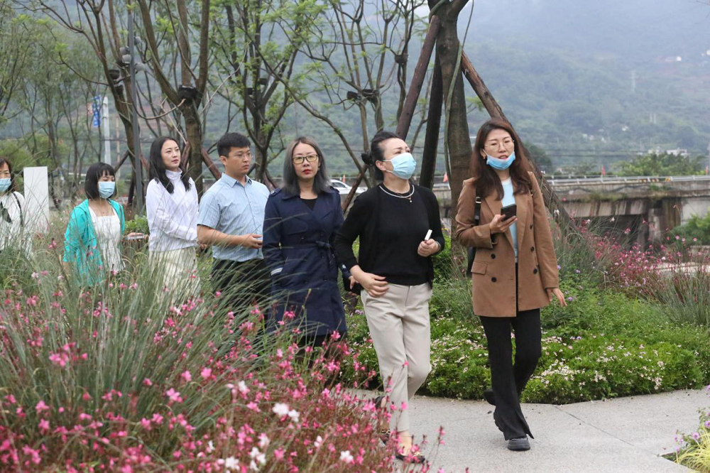 在大地公園景觀步道,大家一路前行,欣賞盛開的百花,感受和煦的清風(fēng)。李總向客人們?cè)敿?xì)介紹了項(xiàng)目景觀的設(shè)計(jì)理念,花卉苗木的種類和特點(diǎn)等情況。