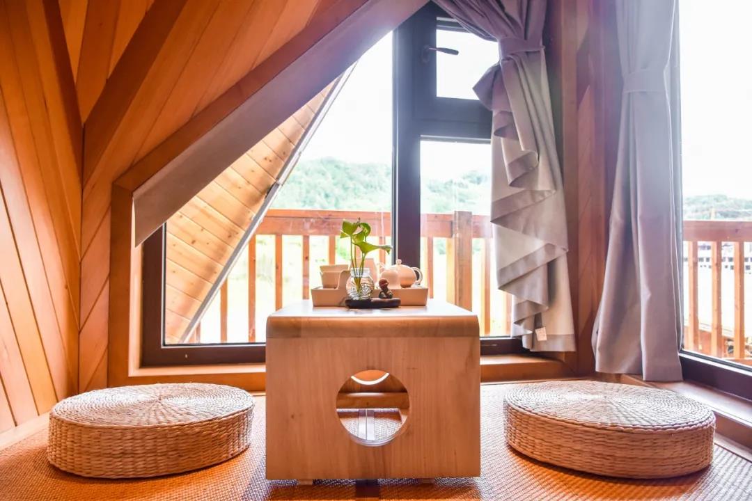 在木屋文化的發(fā)源地愛沙尼亞,木屋被稱為“同居住者共呼吸”的建筑。因?yàn)槟疚萁Y(jié)構(gòu)建筑通過合理設(shè)計(jì)與布局,適量吸收太陽光線,雨季還能調(diào)節(jié)室內(nèi)濕度。走進(jìn)客房?jī)?nèi),便能聞到木材散發(fā)出富含芬多精的原木清香。角落里特設(shè)的榻榻米和精致茶臺(tái),更是讓客人得以在迷人景致中舒坦心境,享受靜謐空間。